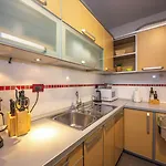 Há frigorífico grande, congelador e fogão fornecidas numa cozinha equipada. Este apartamento está a alguns minutos da paragem Stadiumi Dinamo.